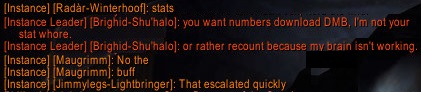 LFR angst. Every raid has someone who has to get arsey. It’s like some Blizzard rule that if you don’t have someone in there who is having a bitch-fit about something then you are doomed to fail. Needless to say its those very same raids that usually have you crying with laughter as people engage their typing fingers before their brains…