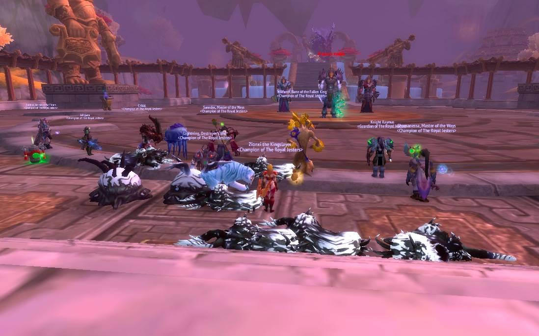 After last week’s poor advancement through Terrace of Endless Spring we managed to get a full raid group together. From the people committed to RT3 we had Chizal, Lightning, Sanndo, Jollyjane and myself. We had an off tank and four dps. It was coming up to raid time and a sixth member wasn’t logged in and we needed to find people. Luckily for us, RT2 had been forced to call a raid for tonight and while they were making their own fun in the new PvP based raid ‘Shrine of the Two moons’ they decided to come and help us out.