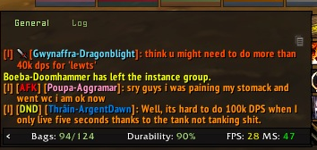 There have been many a funny thing end up in the chat box. Either in Guild Chat or while in LFR. It takes me a while to remember to gather them off my drive and to put them up and also to be paying attention to the chat box when they happen!