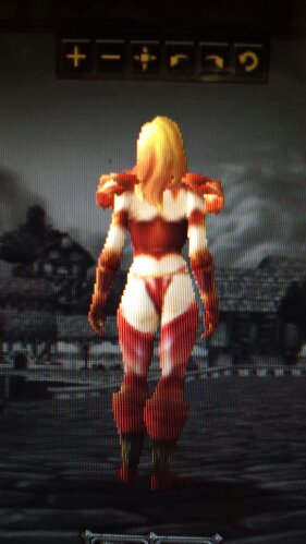Ignoring the dead skin tone (dK’s can’t have it all) and the glowing horror movie eyes your left with someone who put their pants on over their trousers and decided it was a-ok to put on some glittery shit over their tunic like they were a body builder going crazy with the bronzer… The rear was just as bad, if not worse.