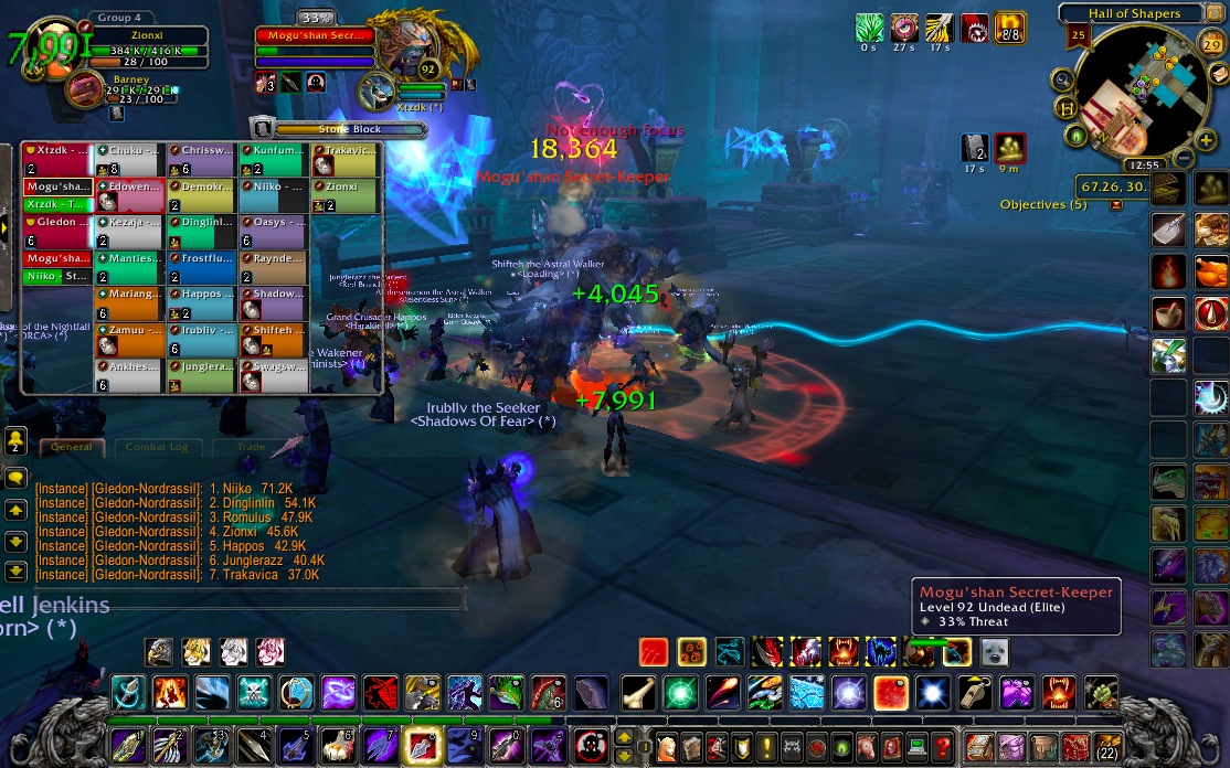 This is an example of the thing that brought terror to me in every lfr I went into. The Hordies loved their recounts. Durumu ended with someone kicking every person who was in the bottom 15 in dps. Along with shouting “omg, kick the fucking noobs!” The constant spamming of recount meant that you usually missed what was going on…
