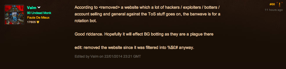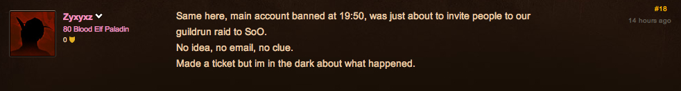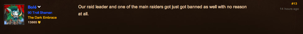 Some of the bits from players/friends of players: Most complaining that it was raiders that got banned. Main tanks, officers, the DPS.