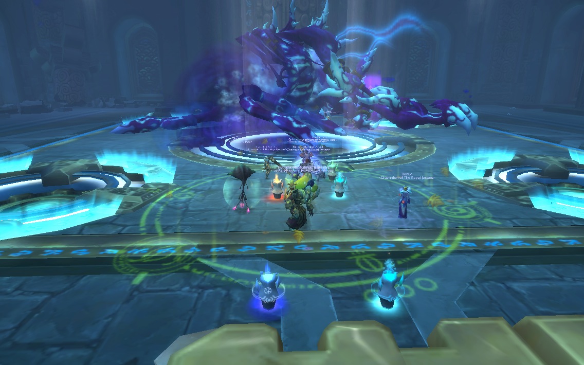 We had a brief chat about platforms and Tsff and I both tried to use the purple marker at the same time. I wanted to use it to explain the dps placement and he wanted to use it for the tanks platform. In the end it marked the tanks and I completely forgot about explaining the stack and spread. Once the raid started everyone seemed to know instinctively what they were doing. Or everyone was telepathic…