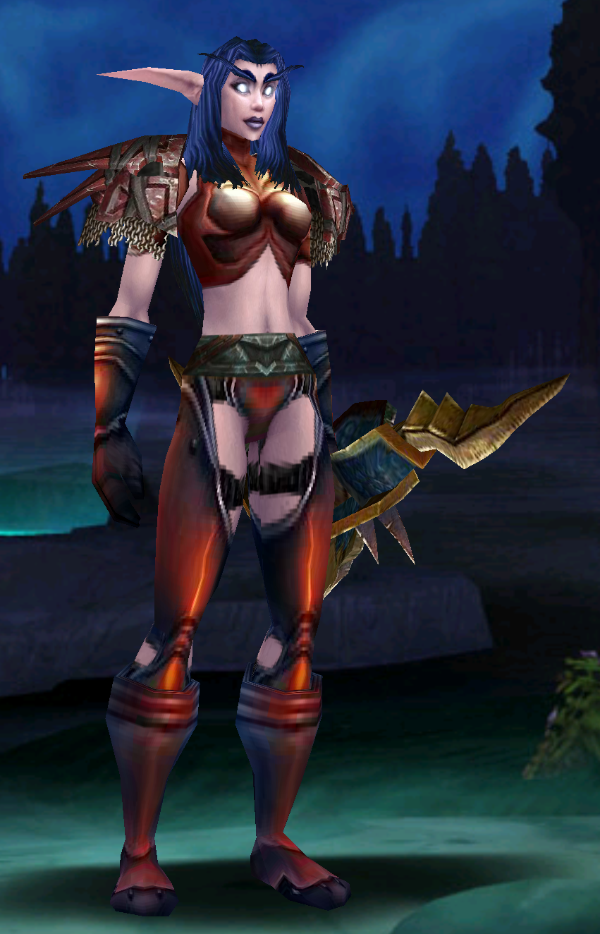 We’re now on the hunt for an epic bow to go with it all. We were looking at Heartstriker from Blackwing Lair. Not an easy thing to obtain as you (as far as I’m aware) can’t get past the first boss on your own. Having a black and red theme does have its downsides!