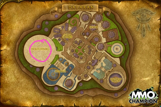 Dalaran Zidormi teleports you to the Caverns of Time. Pretty handy as a southern entry point for the Alliance to go running off and doing what they need to. (Thanks to MMO Champion being the only image of Dalaran that didn’t have stuff all over it)
