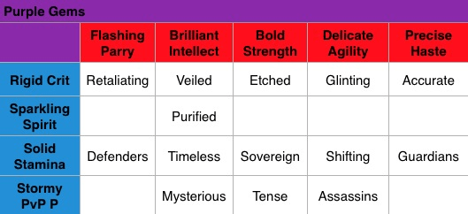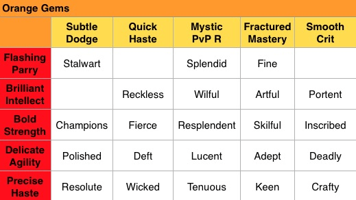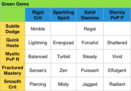 The stat squish has now meant that there are more of gems that provide the same stats just for different colour gem slots, and also some hybrid gems that now provide the stats of parent gems.