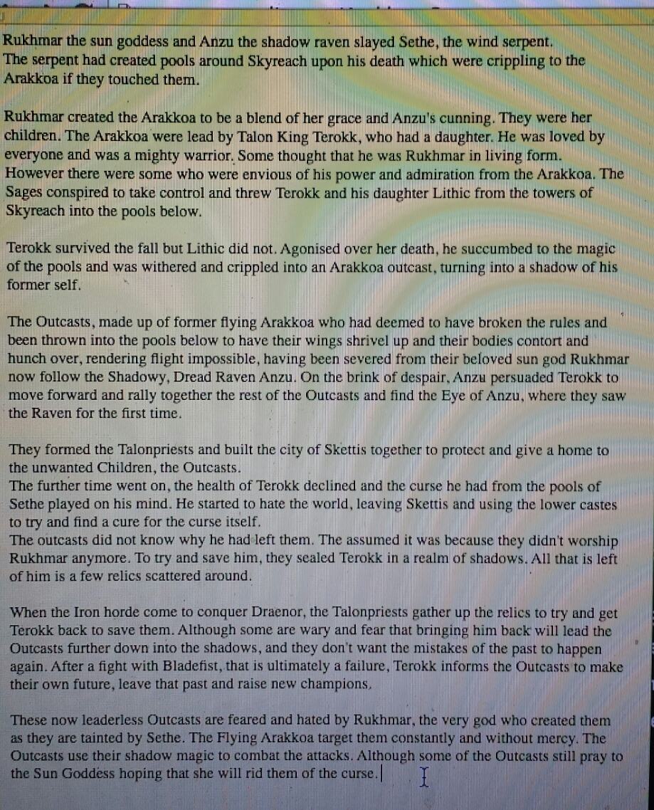 I hope that we get the back story on why Ikiss has gone mad as the Arakkoa outcasts already have branded him a lunatic as soon as you step into Spires. My hate of questing has meant that I’d not really paid much attention to them in Outland other than just an initial fascination with how they looked and moved and that they seemed to be desperately clinging onto some misguided hope from the past.