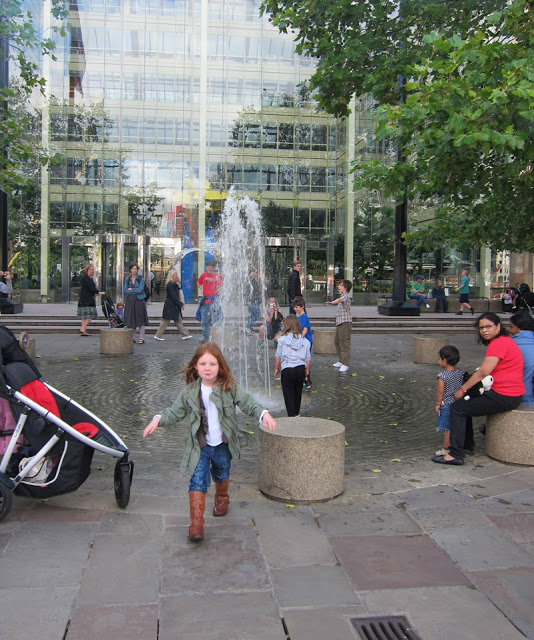We headed off. Francis was obsessed with going up stairs and had to be called back down. Asking the way we found a little fountain comprised of small jets of water coming out of the floor.