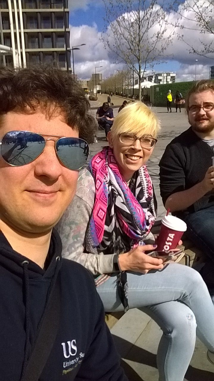 Going in we headed to the bar and ordered drinks, we chose to sit outside as even though it was fairly windy, it was a sweat box inside. Heading out we picked our bench and procceded to wipe off the rain from the seats. Rawls somehow managed to wipe his dry and then spill beer on it. I went to the loo and brough back tissue to dry my spot. We were chatting about all sorts, Francis tried to mouth something to Rawls who had to give up after many attempts and announce that he cant lip read. Blunnerz told us about the time he unexpetedly opened up a blood orange and went to laugh about it with Rawls, even though Rawls would not know why it was so funny as all he would see was a green fruit. It was at that moment when we were all very much ‘not prepared’ that a huge gust of wind sprang up. My pint glass fell over and smashed against the ashtray, emptying is contents all over Francis and his bag. Rawls managed to catch Blunnerz’ bottle (which was pretty much empty) and forgot his own which sprayed him in beer. All we could do was laugh. There was glass everywhere. Rawls realised that it wasn’t just his hoodie that soaked up most of it. He looked like he had wet himself after the bottle just poured out into his lap for a split second before being stood up again. It turned out to be the most expensive pint I’ve had after only managing to drink a quarter of it before inadvertently throwing it all over a guild mate.