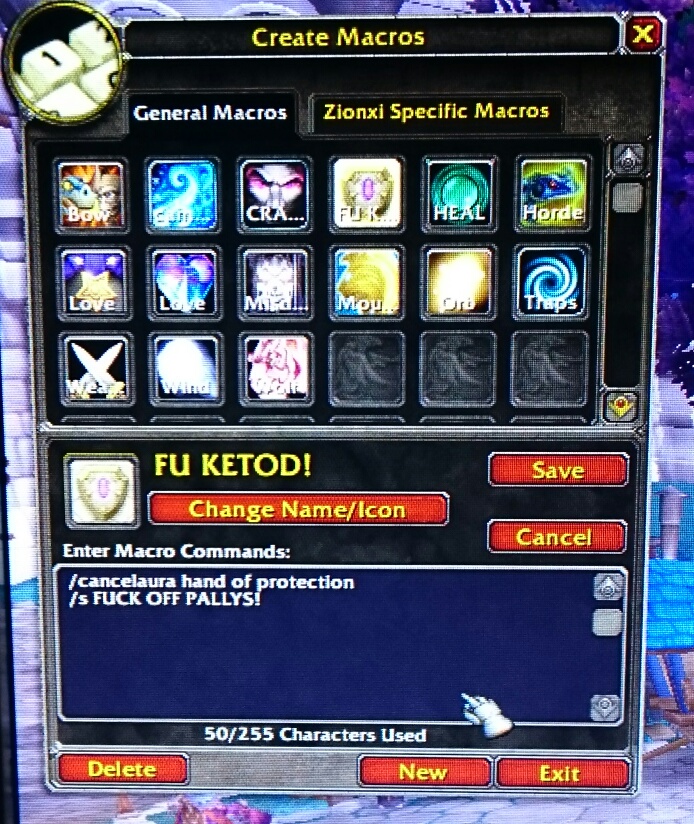 Named FU KETOD in honour of the one who started it, followed by a verbal insult that’s bound to get me into trouble in dungeons and lfr….