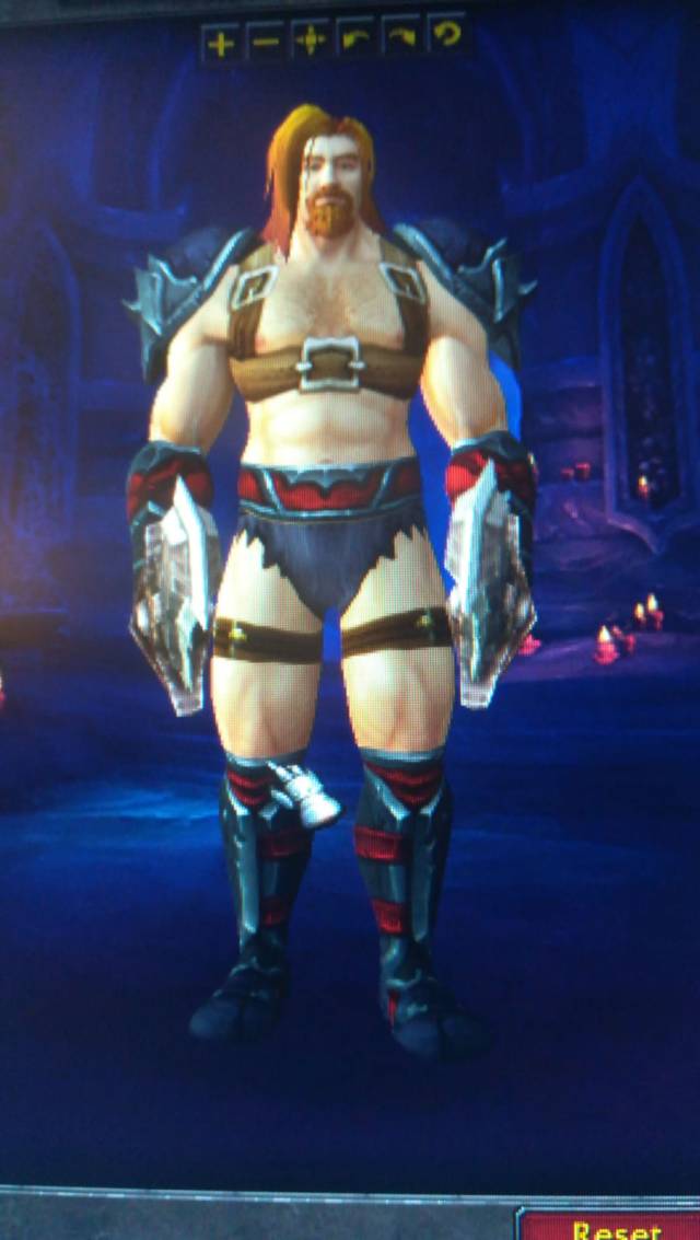I just knew, however, that it wasn’t the best that could be done. There was a better option for getting more of this hulking human man flesh out on display. I started furiously trawling through the options on the Collection of my male Rogue class trial to put together the perfect set….